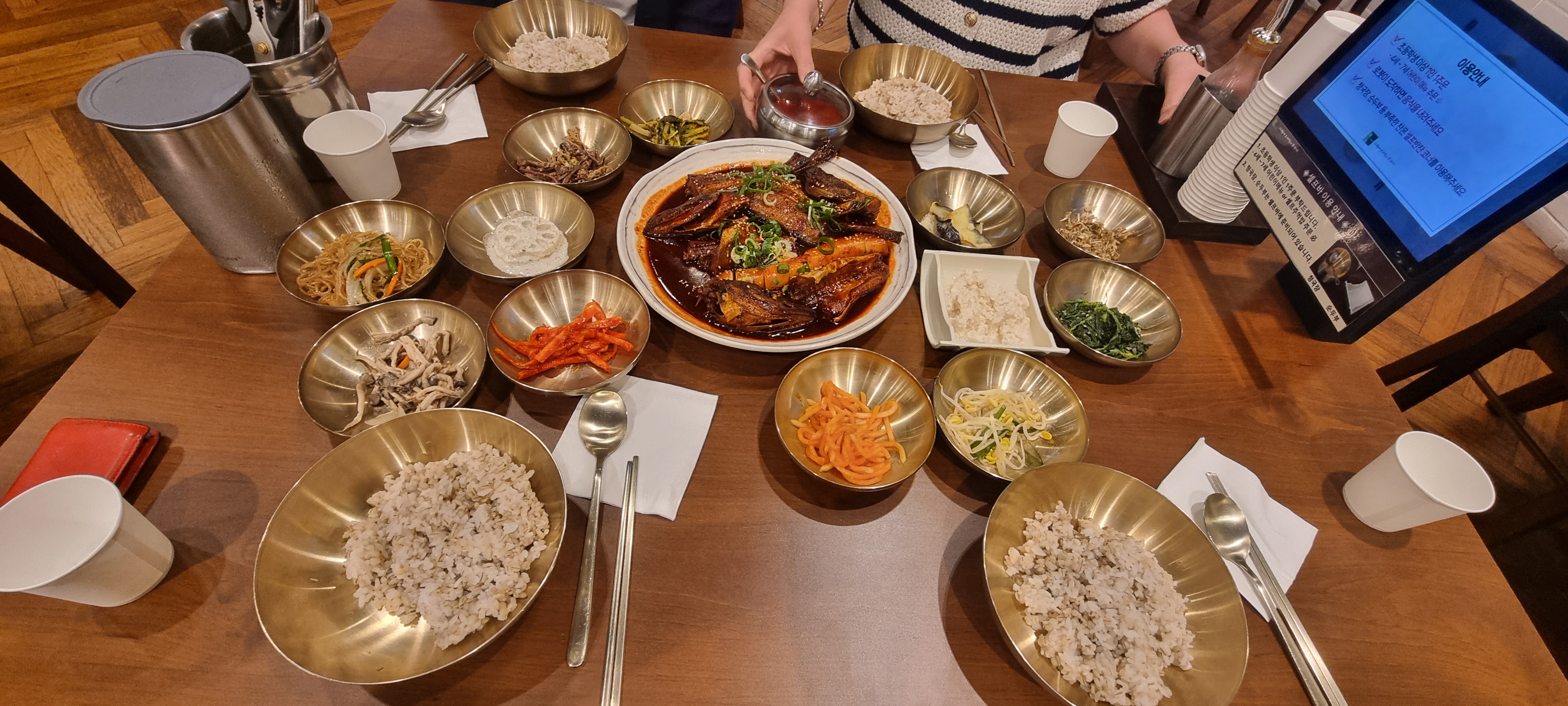 초등학생부터 1인 1 메뉴 주문하면 밥과 반찬이 무한리필이고 숭늉도 있어요