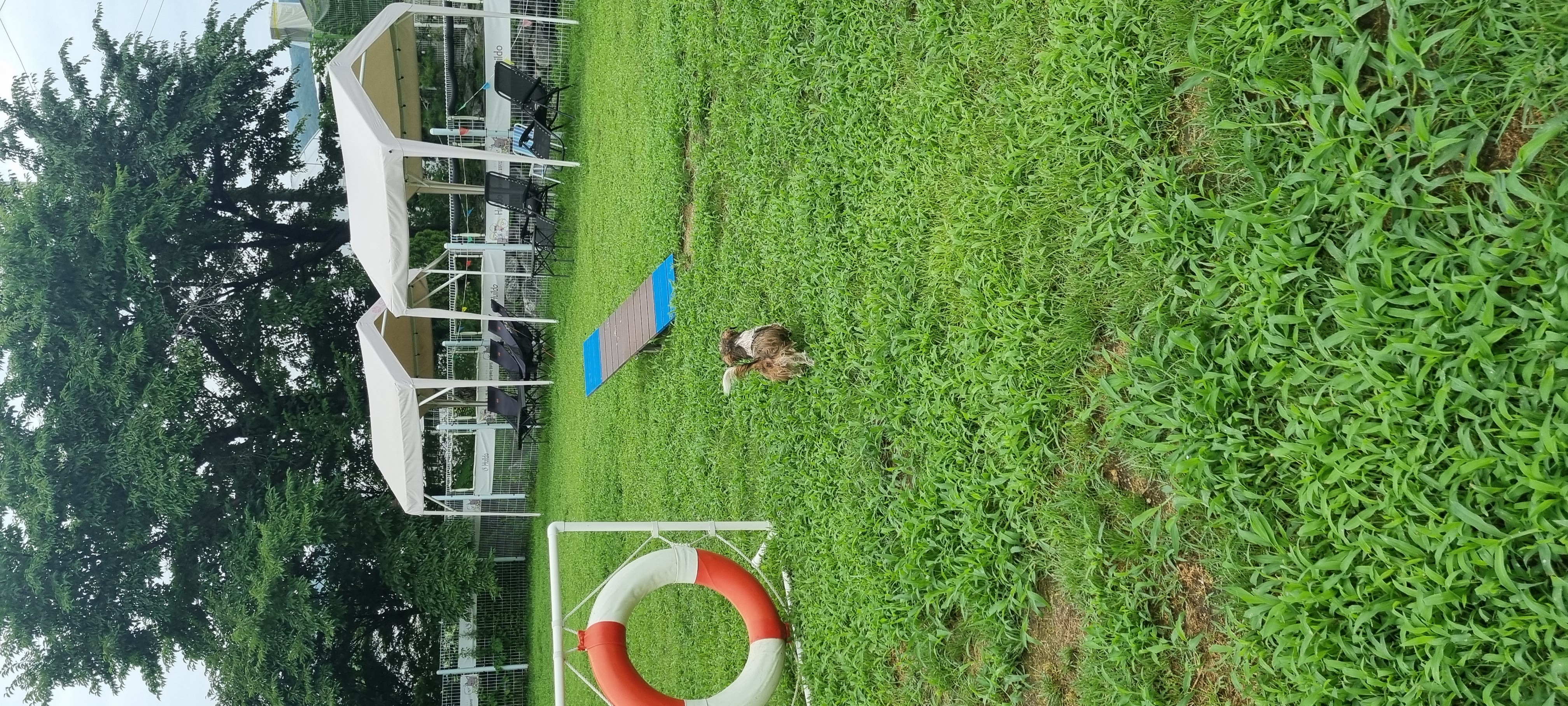 비 온 뒤 풀이 무성한 운동장이지만