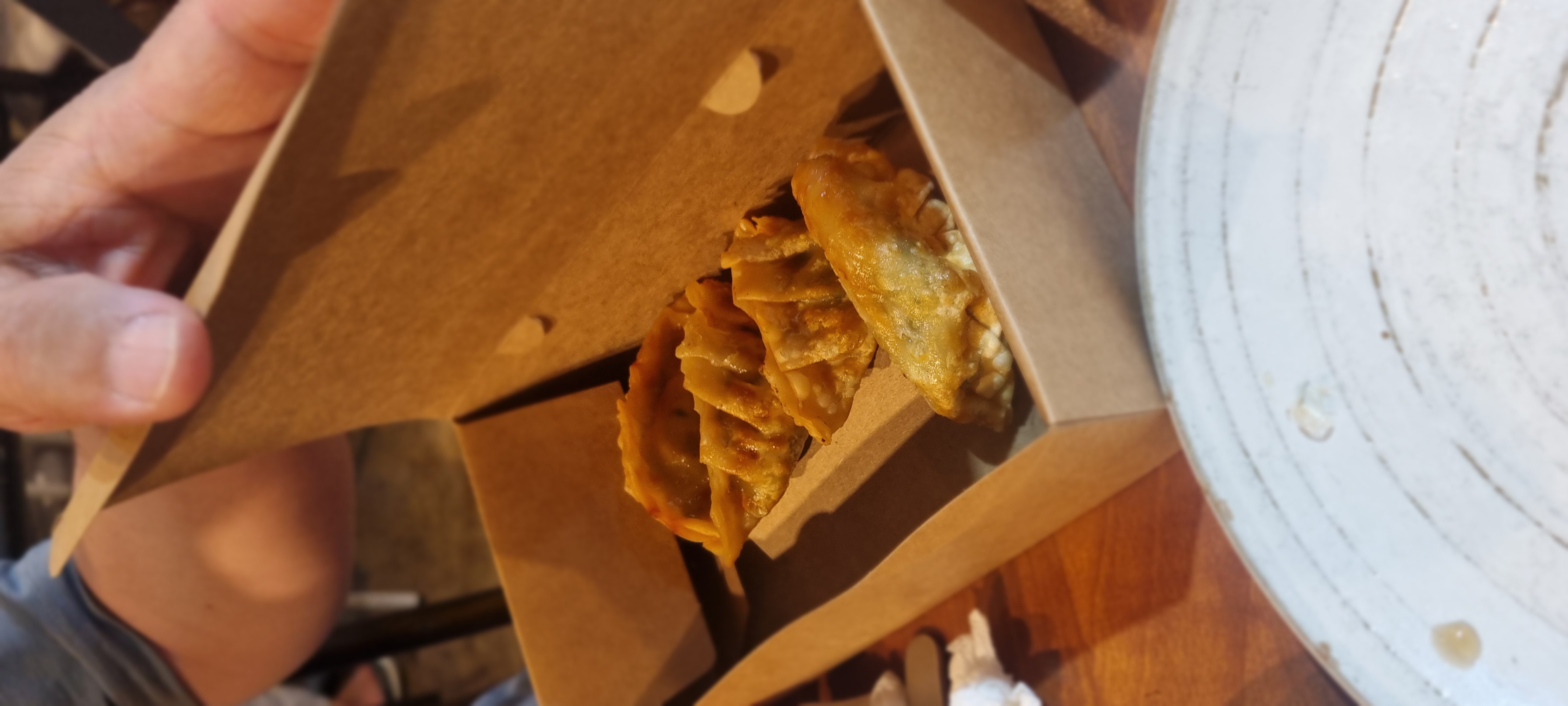 둘이서 너무 배가 불러서 남은 군만두 셀프포장했어요