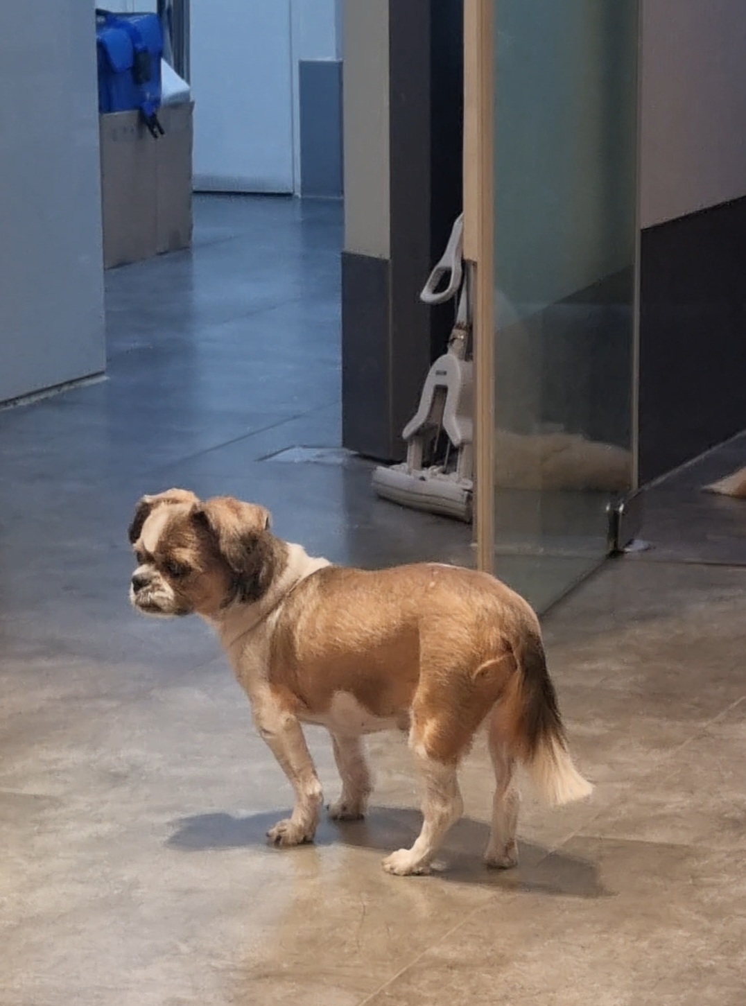 근데 막상 병원 로비에 내려놓으면 꼬리는 아래로 말아내리더라도 이곳저곳 탐색하며 돌아다녀요