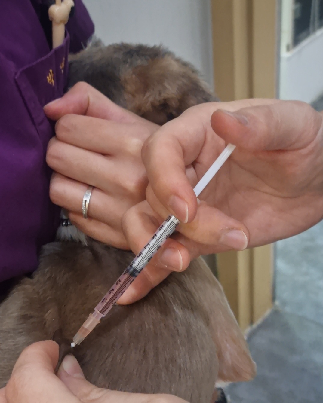 의사 선생님의 능숙한 손놀림이 우리 갑순이 순식간에 접종 완료요~^^