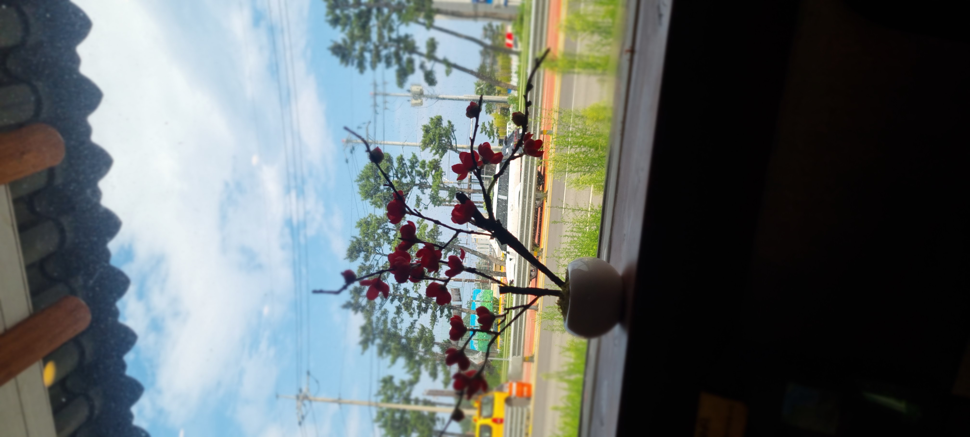 창가에 꽃과 밖의 이글이글한 쨍한 날씨와 안의 추울 정도의 시원함이 잘 어우러지는 곳이에요