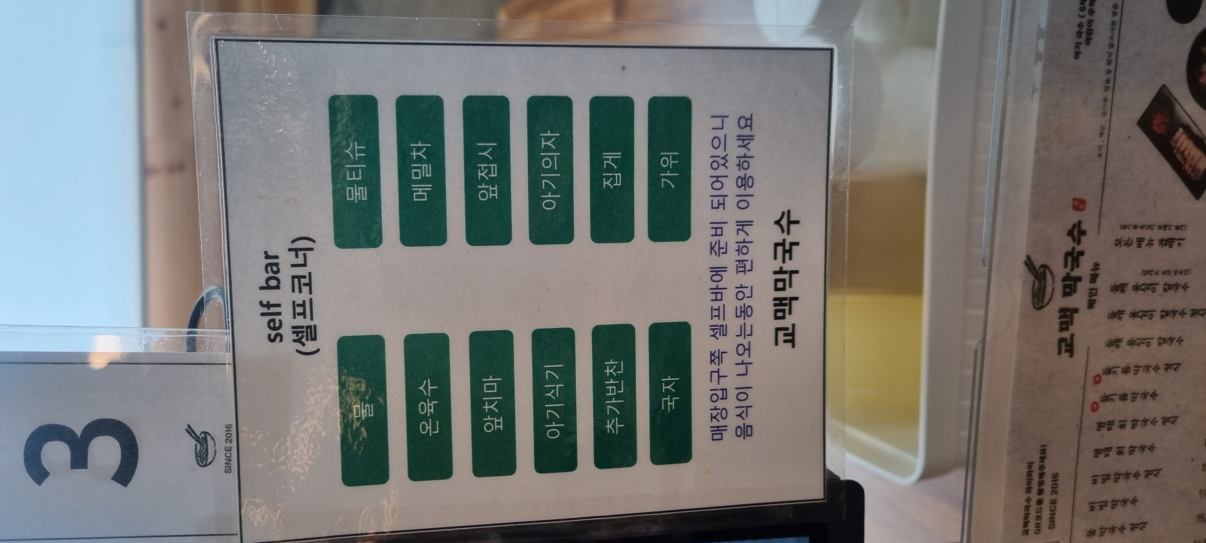 셀프코너에 준비되어 있는 것들이 친절하게 표시되어 있어요