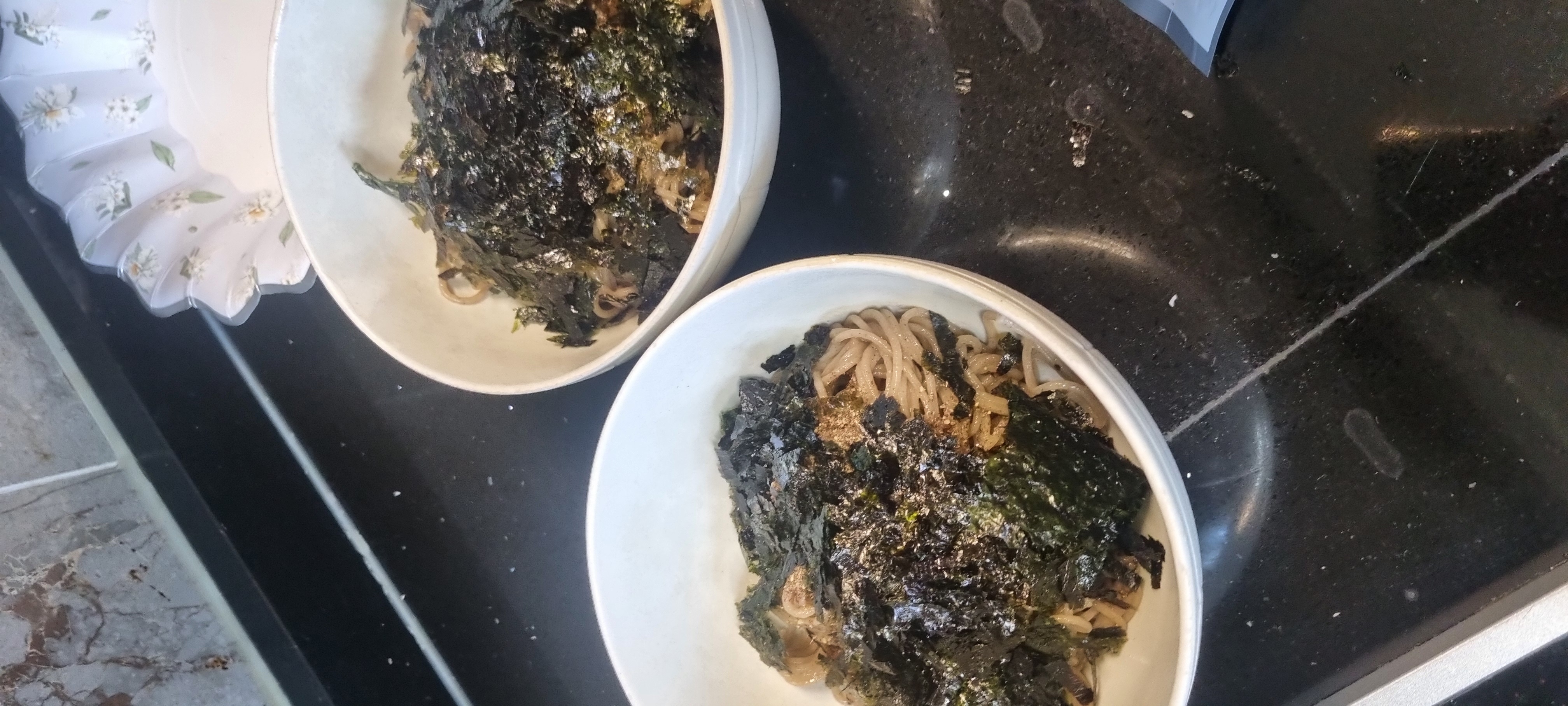 짜지 않고 김도 맛있어서 한 봉지 사놓으면 그동안은 볶음밥 할 때 넣어서 먹곤 했는데 들기름 막국수에 빠지면 안 되는 재료가 바로 김이더라고요