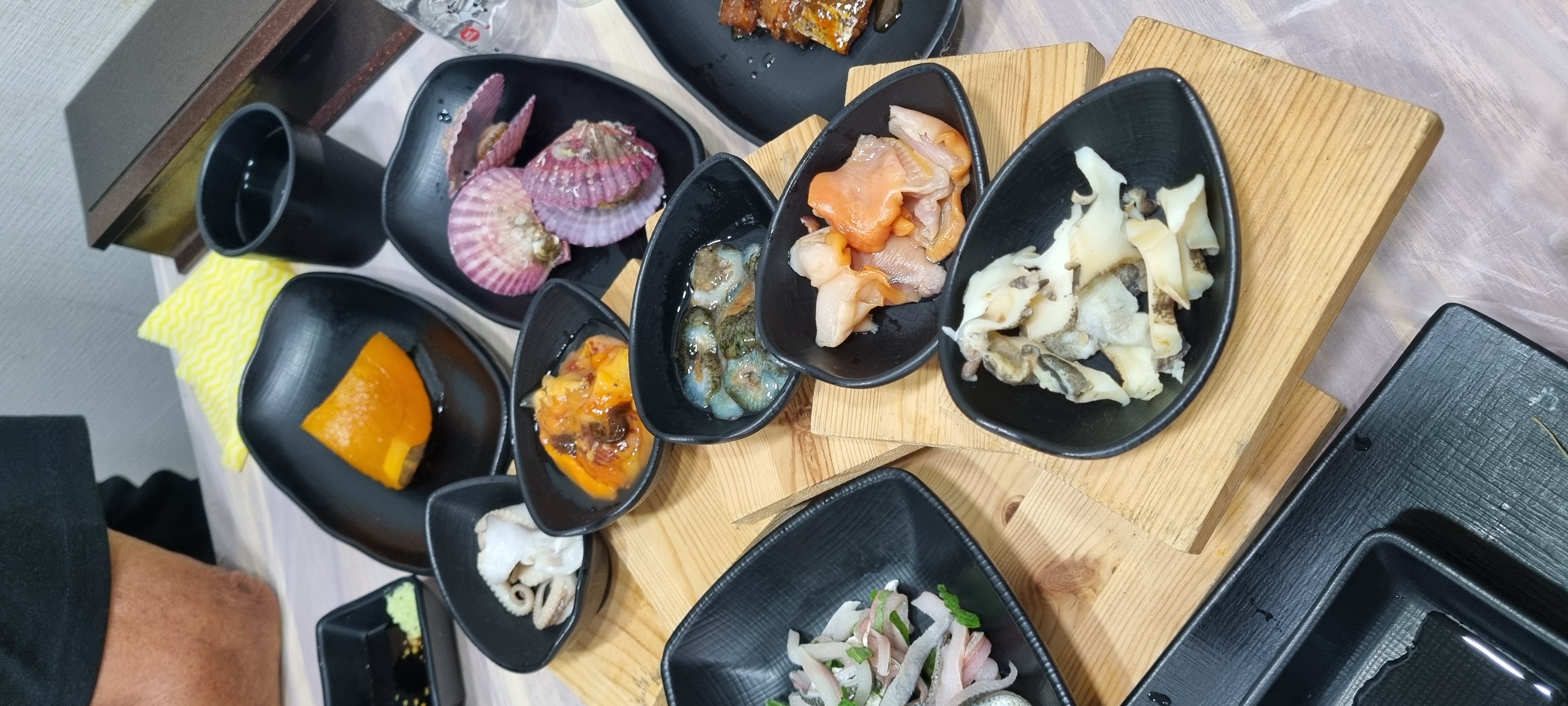 다찌는 그날의 해산물을 주인장이 임의로 술안주로 준비해 주는 통영 등지의 술안주 문화라는데 요즘은 가족단위로 여러 가지 해산물과 회를 즐길 수 있어 많이 찾는다고 해요