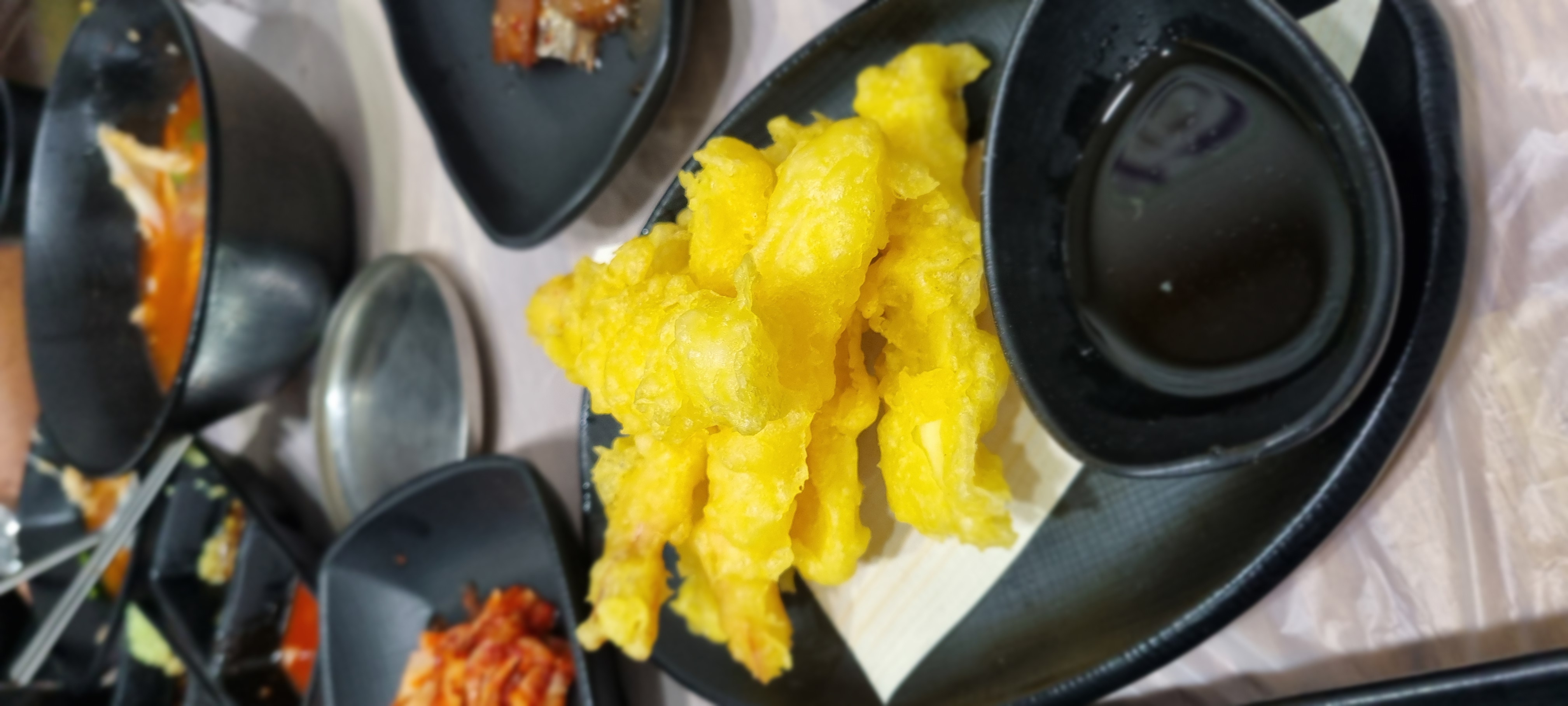 생새우 튀김이랑 햇고구마 튀김이 나와요