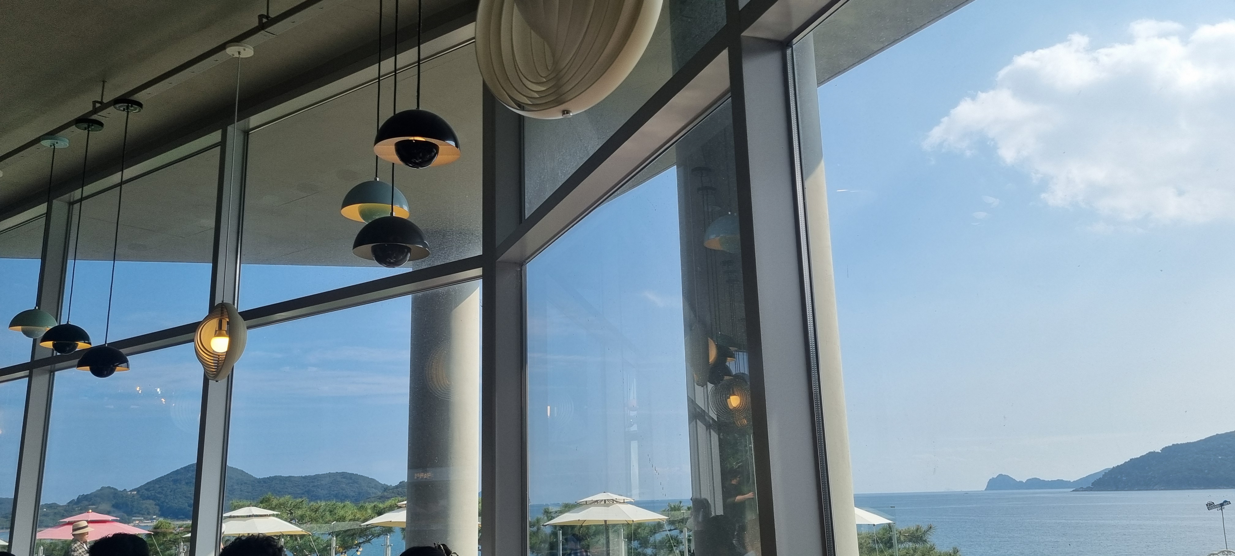 카페에서 바라보이는 바다 풍경이 가슴이 탁 트여요