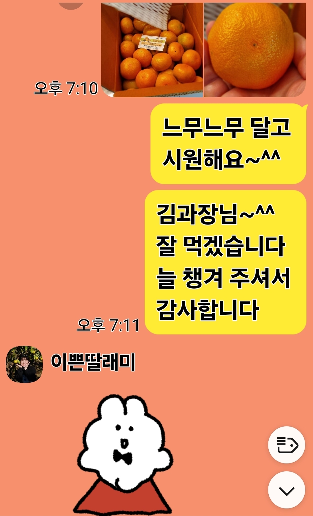 경희농장이라는 곳에서 온 귤이에요