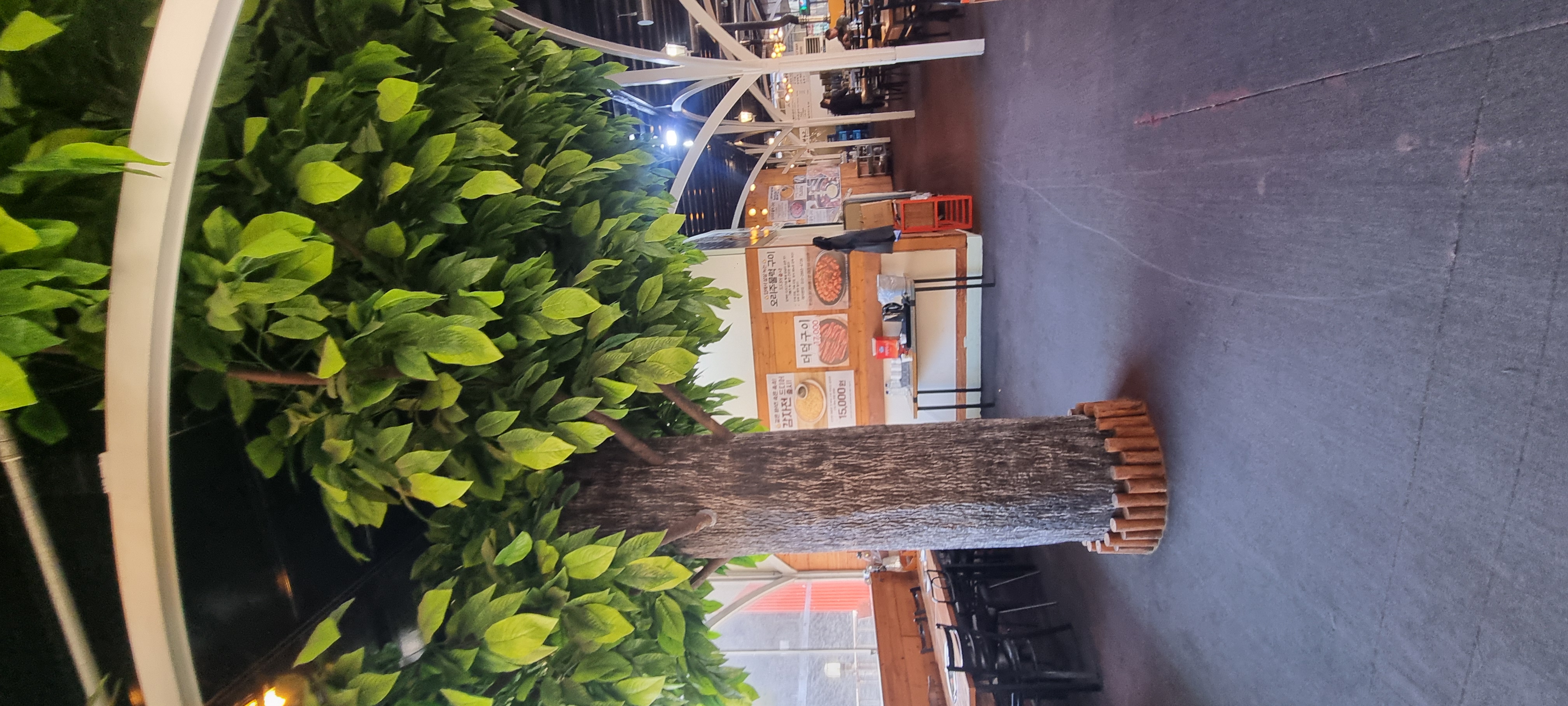 입구에 커다랗고 푸른 아름드리나무가 인상적이에요