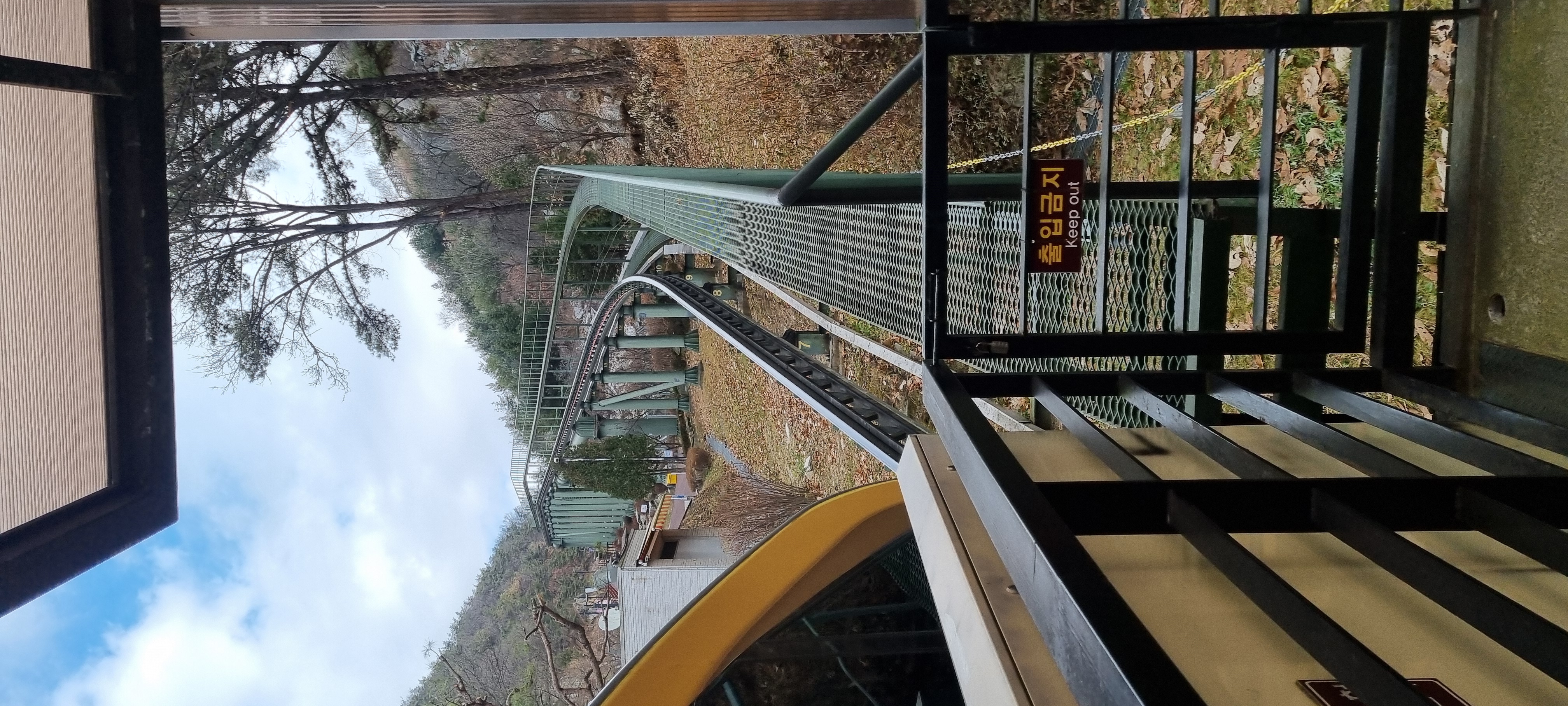 아래쪽으로 내려가다 보니 올라오는 모노레일이 보이네요