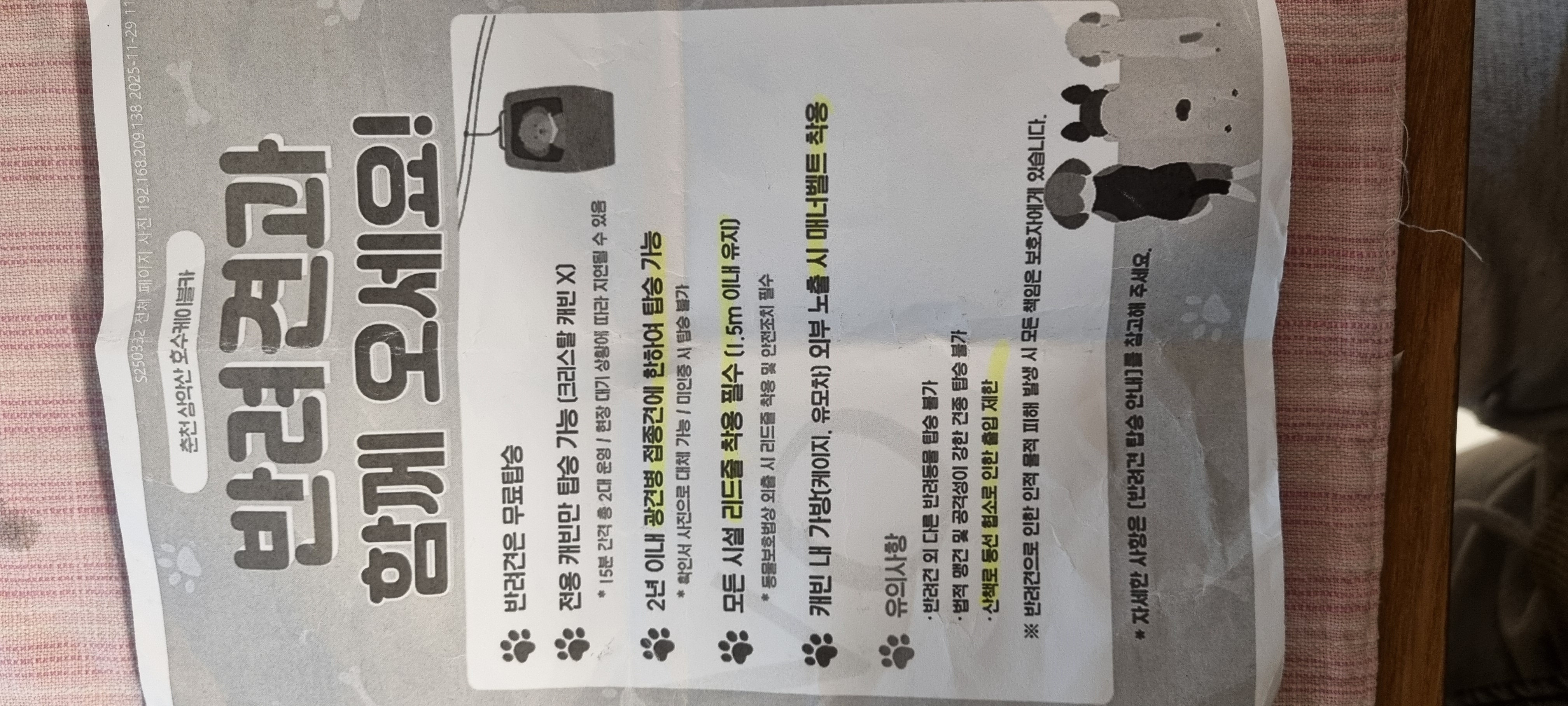 반려견과 같이 탑승할 수 있어서 우리 갑순이랑 같이 갔어요