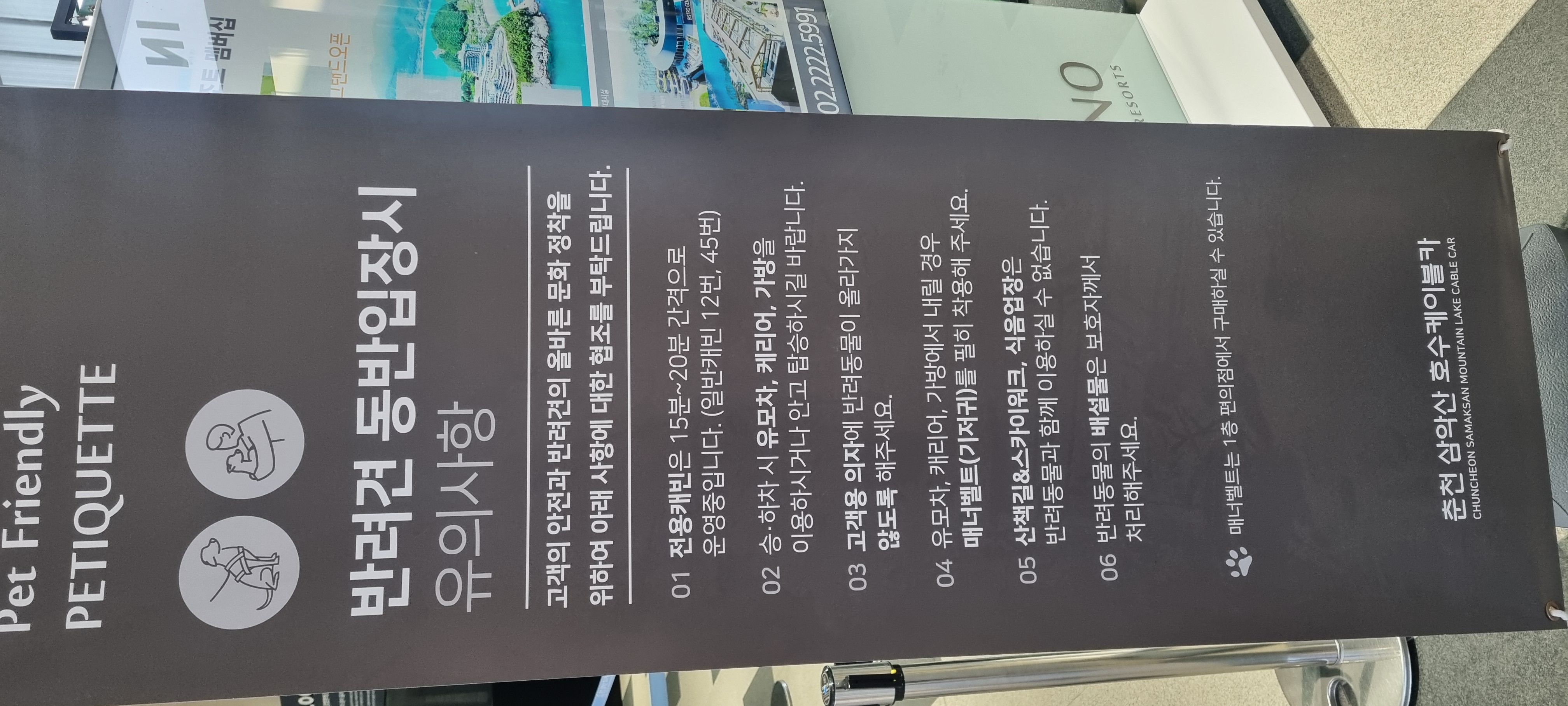 반려견 동반 케이블카는 66 대중 2대이고 케이블카 앞에 멍멍이 그림으로 표시되어 있어요