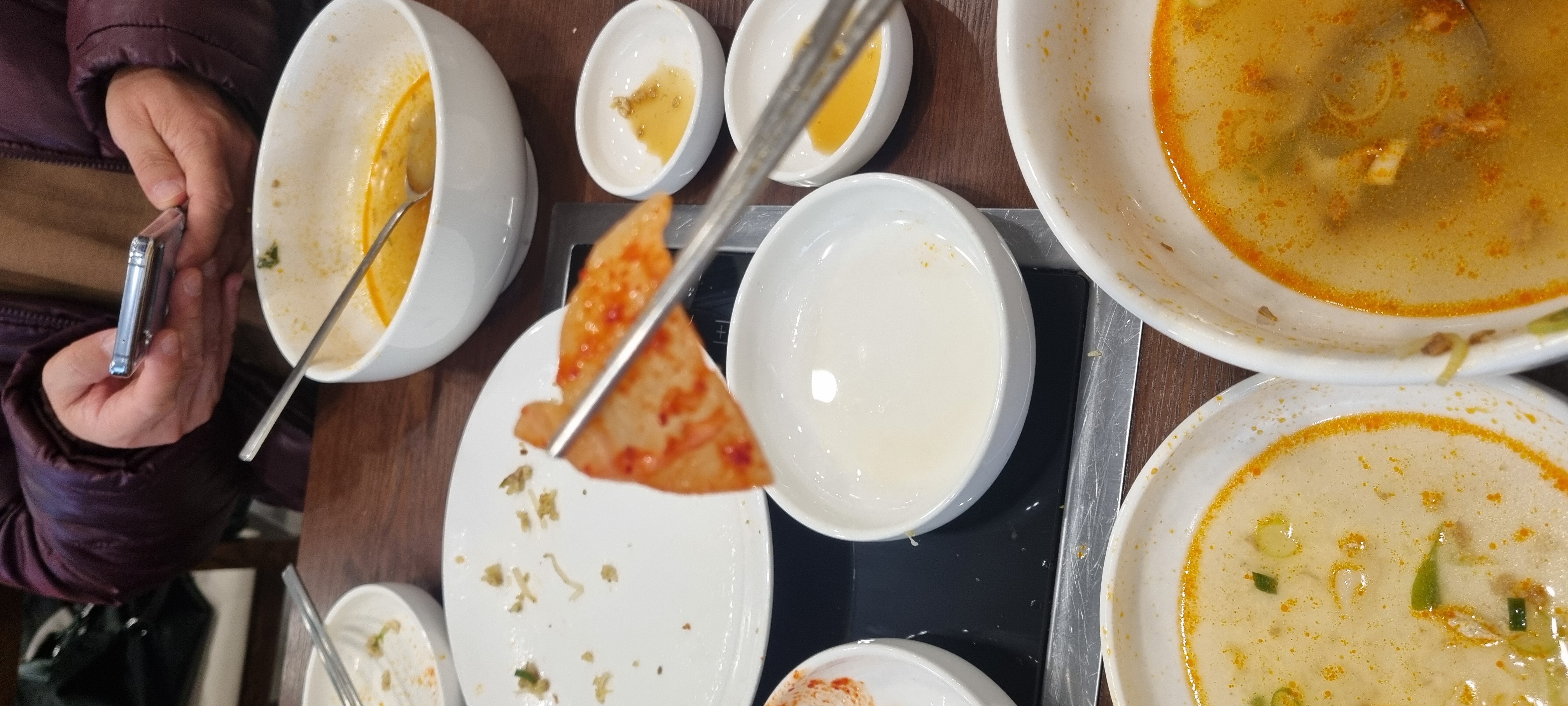 울 아저씨가 먹던 접시에 셀프코너에서 김치랑 단무지 더 가져왔는데 접시를 바꿔서 담았대요