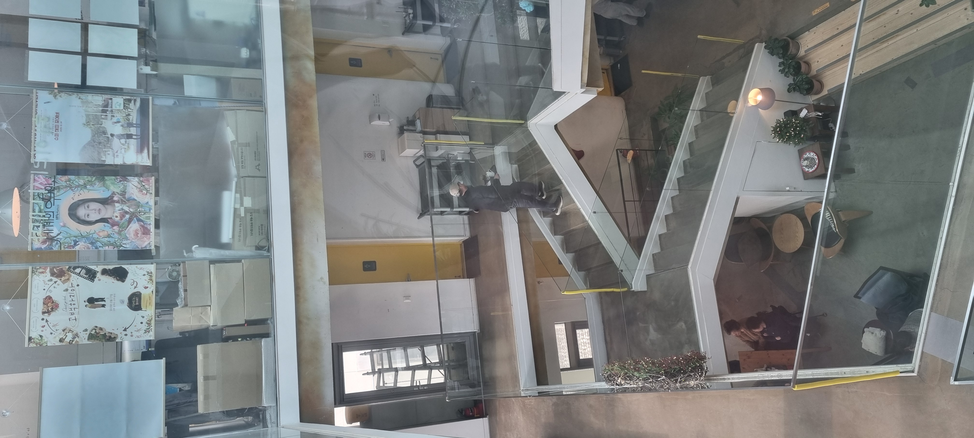 3층건물에 사람들이 꽉 차 있어요