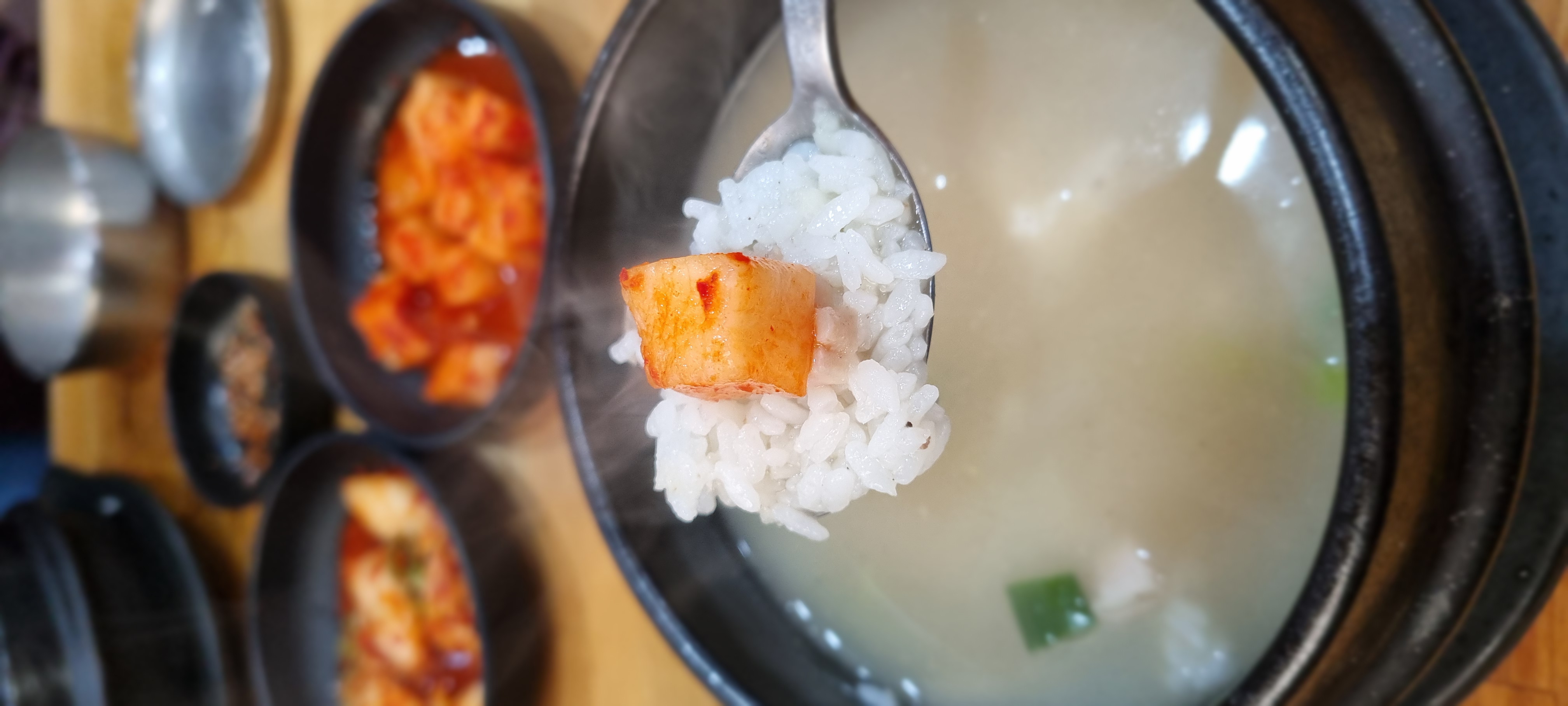 곰탕 국물에 밥 적셔서 깍두기랑 먹으면 꿀맛!