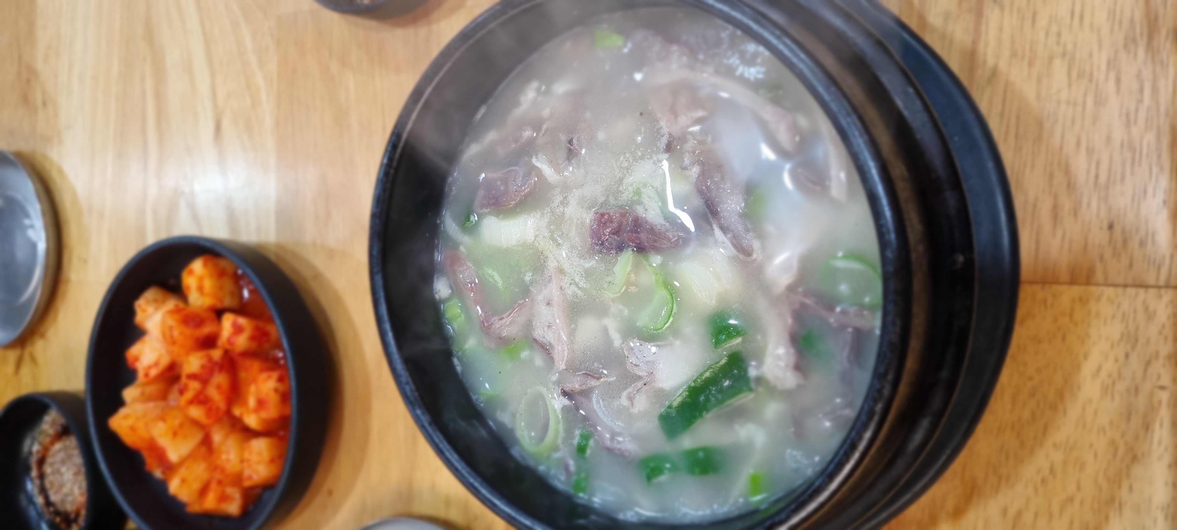 기존 곰탕과 다른 게 칼칼한 맛이 잡내와 느끼함을 싹 잡아주는 것이에요