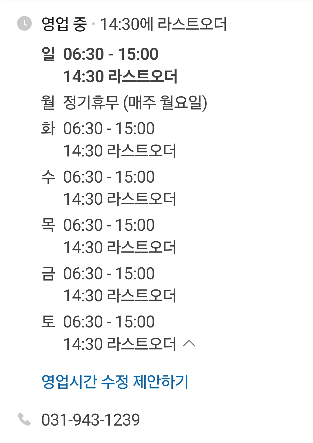 오후 2시 30분이 마지막 주문이에요