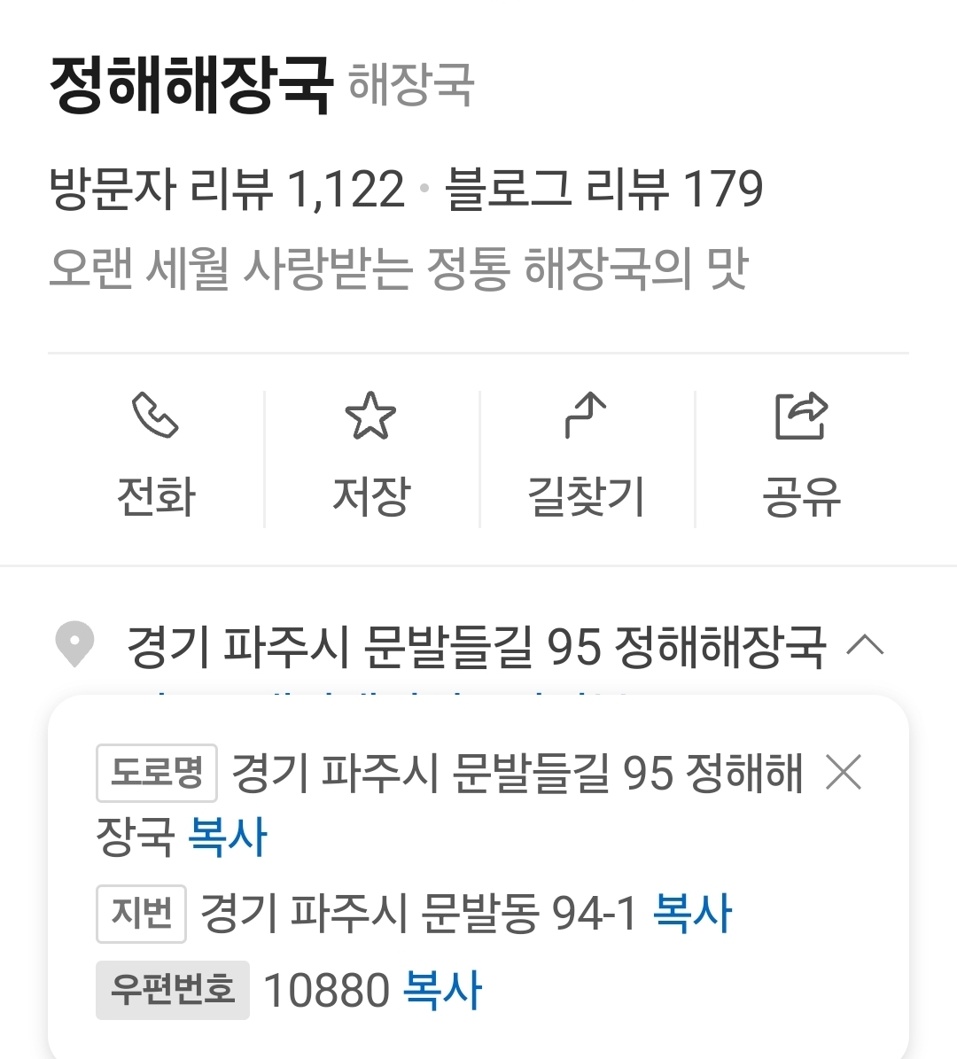 한파도 녹일 내장곰탕 파주 정해해장국