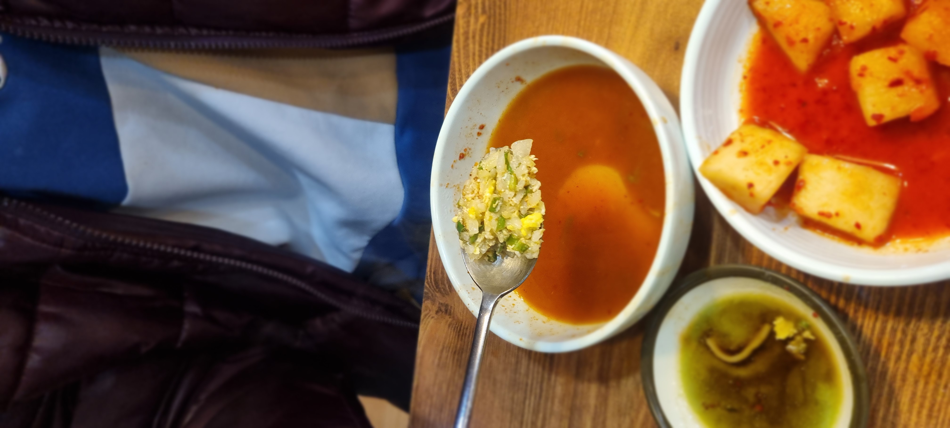 볶음밥 한 숟가락에 얼큰하고 진한 칼국수 국물 떠서 먹으면 제 맛이죠