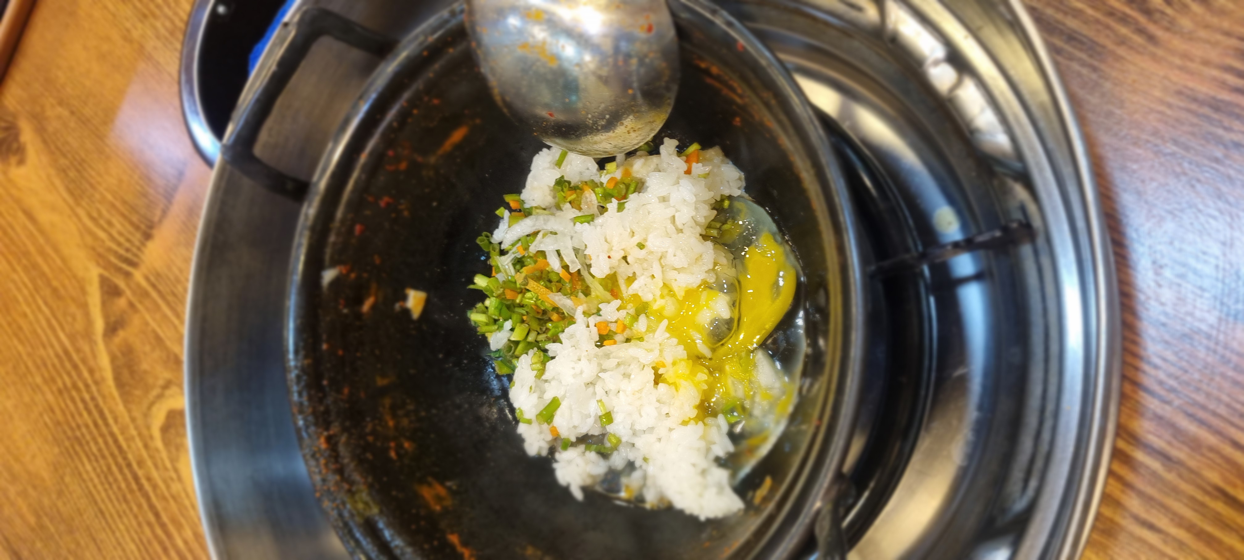 칼국수랑 버섯과 야채를 다 먹을 때쯤 볶음밥을 만들어 주시더라고요