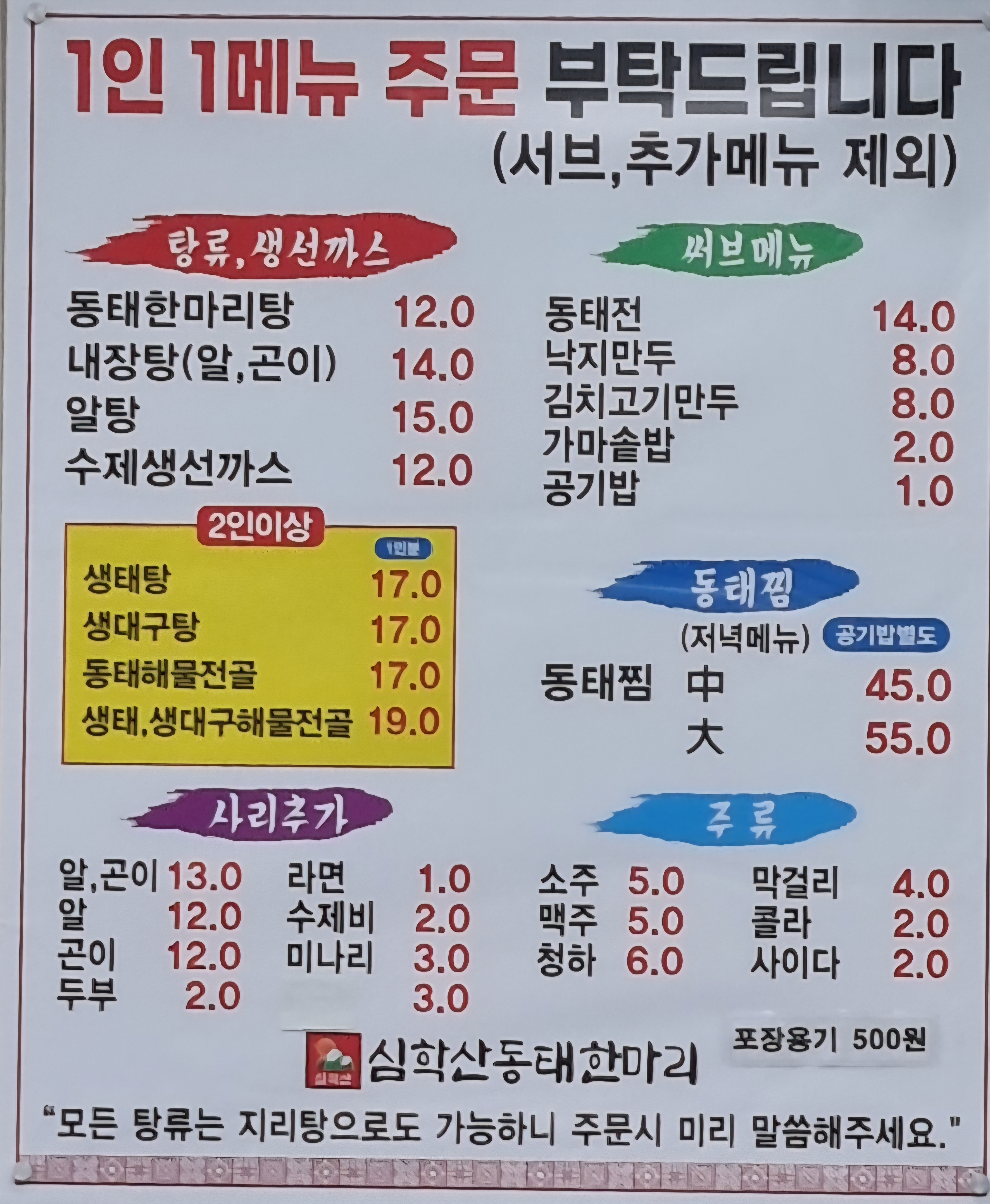 들어가면서부터 그 특유의 구수한 동태탕 냄새가 최고네요
