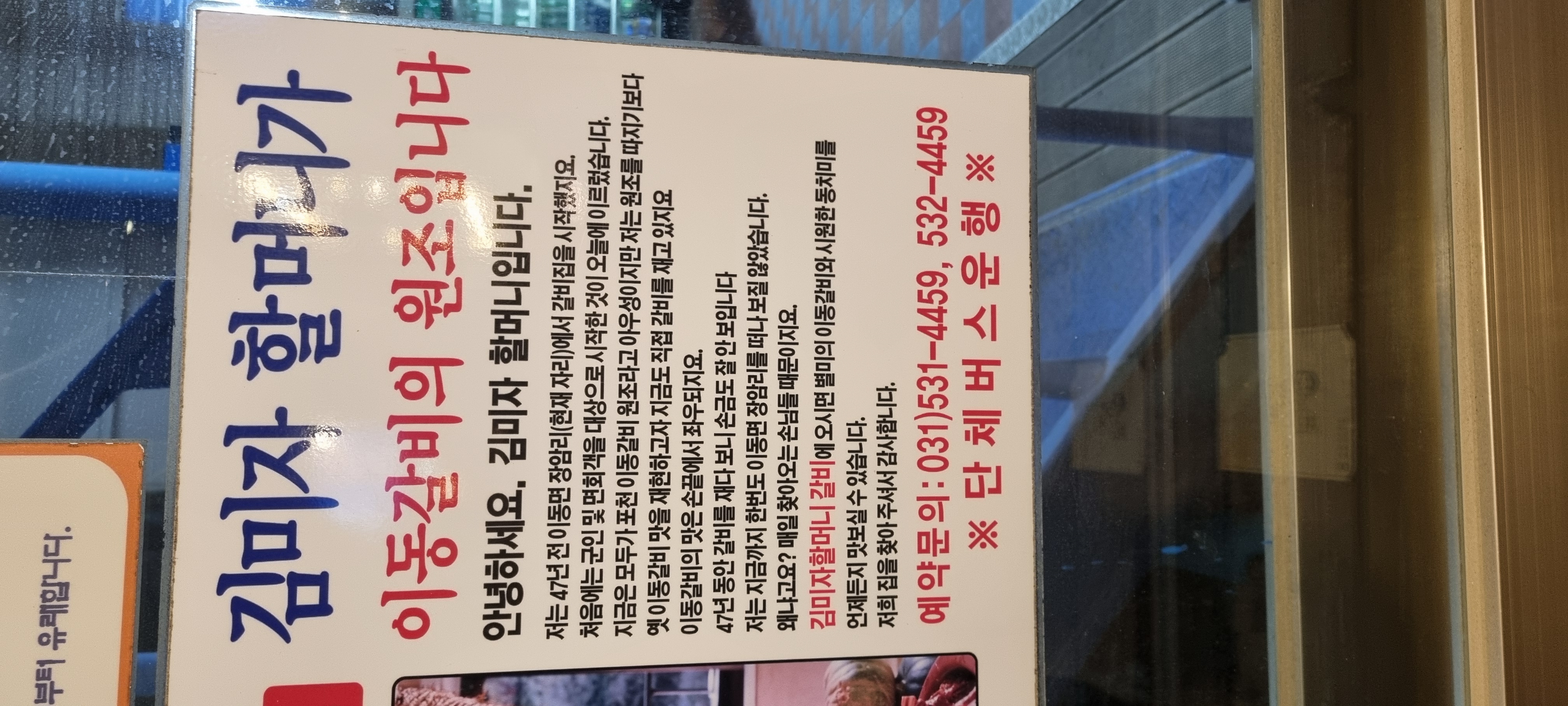 다 먹고 밖에 나오니 김미자이동갈비의 역사가 적혀있네요